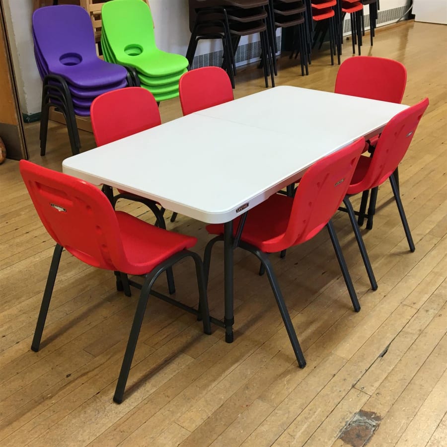 Children's 4ft Table and 6 Red Chairs