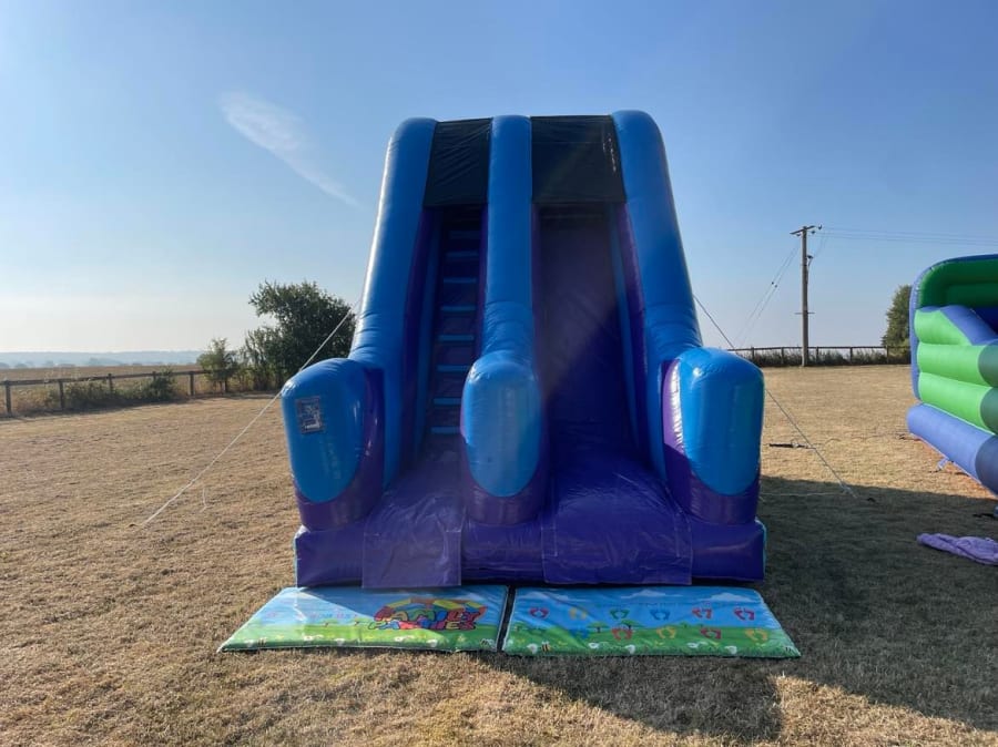 Our 'Party Time' slide will certainly be the centre of attraction at your next party. With a platform height of 10ft, and an overall height of 14.3ft this inflatable is very eye catching. The kids will have immense fun scaling the steps, and whizzing down the slide again.
