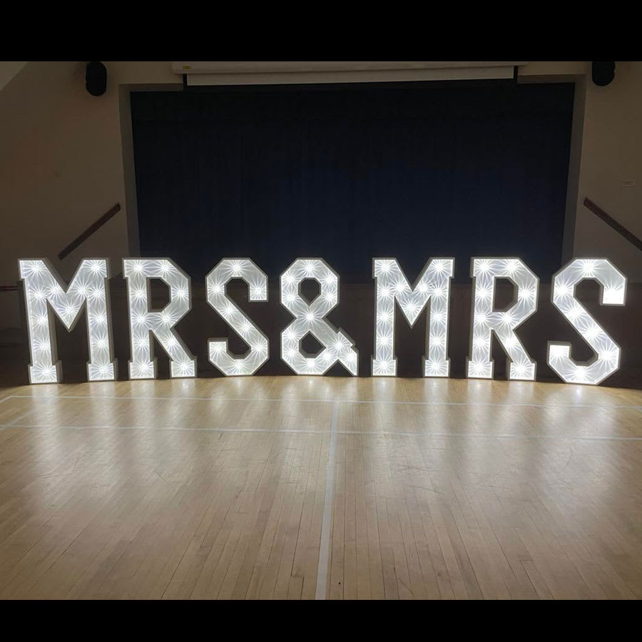 Our stunning 4ft tall, LED Light Up 'MRS & MRS' letters are perfect for your Civil Ceremony.