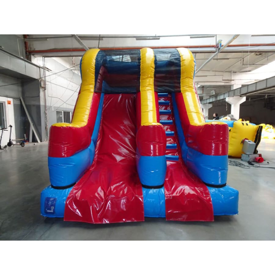 With a platform height of 8ft, the overall height of this inflatable is 11.3ft making it much more suitable for indoor hires than our 10ft platform slide that stands at 19ft tall. The kids will have immense fun scaling the steps, and sliding down the slide again.