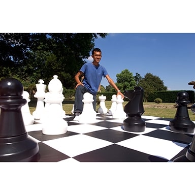 This giant chess set is a real feature at at any occasion. With it's 64 piece chequered board, and 32 giant chess pieces, 16 white and 16 black, it's sure to draw some attention.