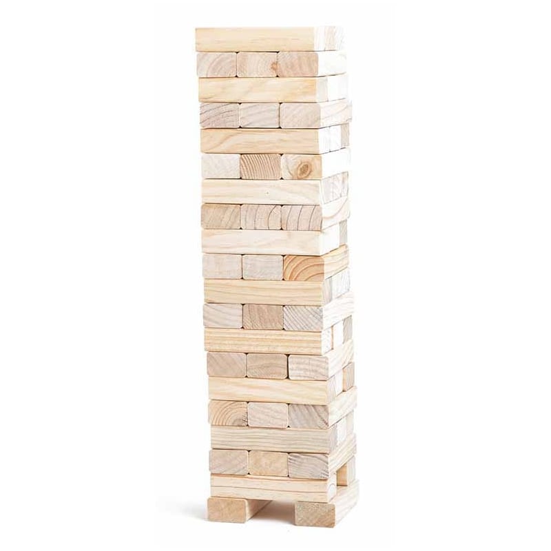 Based on the much smaller, table top version of Jenga, yet smaller than our Super Giant Hi-Tower, our Jumbo Hi-Tower starts at 2' tall and can grow up to 5' 2" tall as the game progresses. It's a game of tension and will have everyone on the edge of their seats waiting for the tower to topple. Who will it be that topples it though? Could it be you? Perfect for family bbq's and garden parties.
