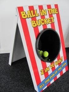 As with all of our Side Stall Games, Ball in the Bucket is a traditional favourite game that everyone remembers, and enjoys. It's simple to play, and great fun for all ages. It's perfect for fundraising events, fetes, charity events, school events, corporate events, or just for fun at your garden party or wedding.