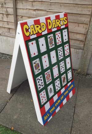 As with all of our Side Stall Games, Card Darts is a traditional favourite game that everyone remembers, and enjoys. It's simple to play, and great fun for all ages. It's perfect for fundraising events, fetes, charity events, school events, corporate events, or just for fun at your garden party or wedding.