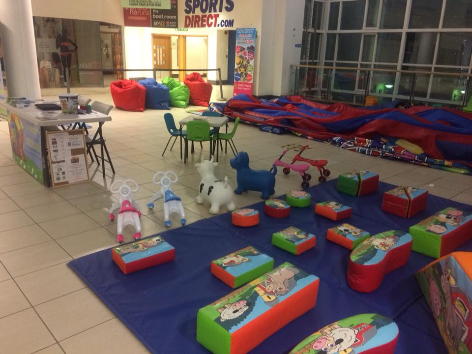For 7 days during the February Half Term, Family Parties were in the Royal Priors Shopping Centre in Leamington Spa. We had a set up consisting of our Party Time Fun Run, our Farm Themed Soft Play and Ball Pool, various Children's Ride-ons such as Happy Hopperz, Scuttle Bugs and Walk n Rides, our Children's Tables and Chairs with colouring in for the children to do, and our Giant Bean Bags for adults to relax on.